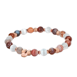 Auf subtile Weise feiert die Kombination dieser beiden Steine den Lebenszyklus, die Erneuerung und die Transformation, und symbolisiert den Übergang von der Vielfalt zur Einheit. Der Träger dieses Armbands wird zu tiefer Gelassenheit und emotionalem Gleichgewicht geführt und bleibt gleichzeitig mit der Größe und Magie des Kosmos verbunden.