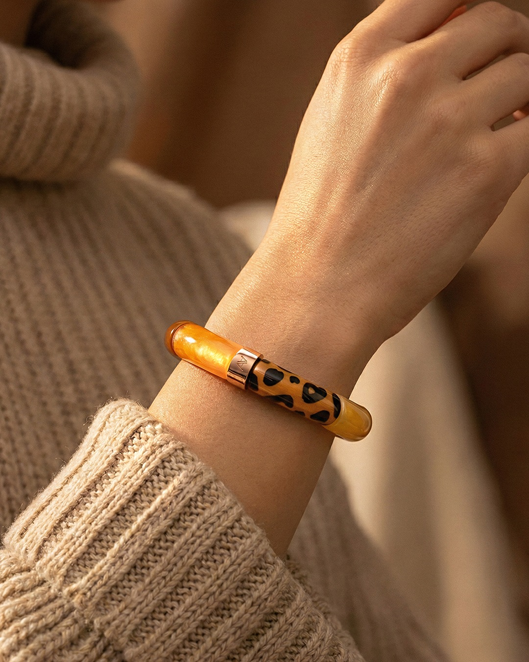 Lassen Sie sich von diesem handgefertigten Acetat-Armband verführen – Symbol für erschwinglichen Luxus und verantwortungsvolle Mode.