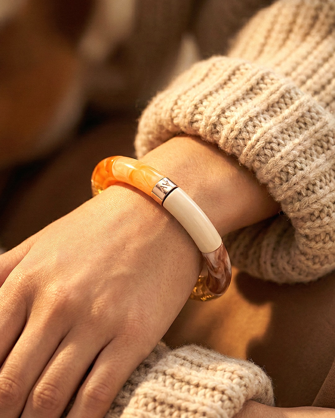 Lassen Sie sich von diesem handgefertigten Acetat-Armband verführen – Symbol für erschwinglichen Luxus und verantwortungsvolle Mode.