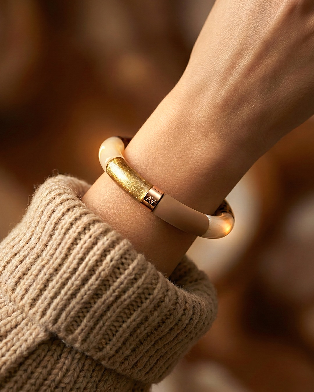 Lassen Sie sich von diesem handgefertigten Acetat-Armband verführen – Symbol für erschwinglichen Luxus und verantwortungsvolle Mode.