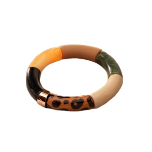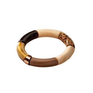 Jedes Armband wird in sorgfältiger Handarbeit gefertigt und ist das Ergebnis akribischer Handwerkskunst, was jedem Stück einen einzigartigen Charakter verleiht. Das Gleichgewicht zwischen dem modernen, gestreiften Design und der Raffinesse des Acetats erzeugt einen markanten Kontrast. Die auf dem Mittelstück eingravierte Signatur von Anna Velazia besiegelt die Exklusivität dieses Sets.