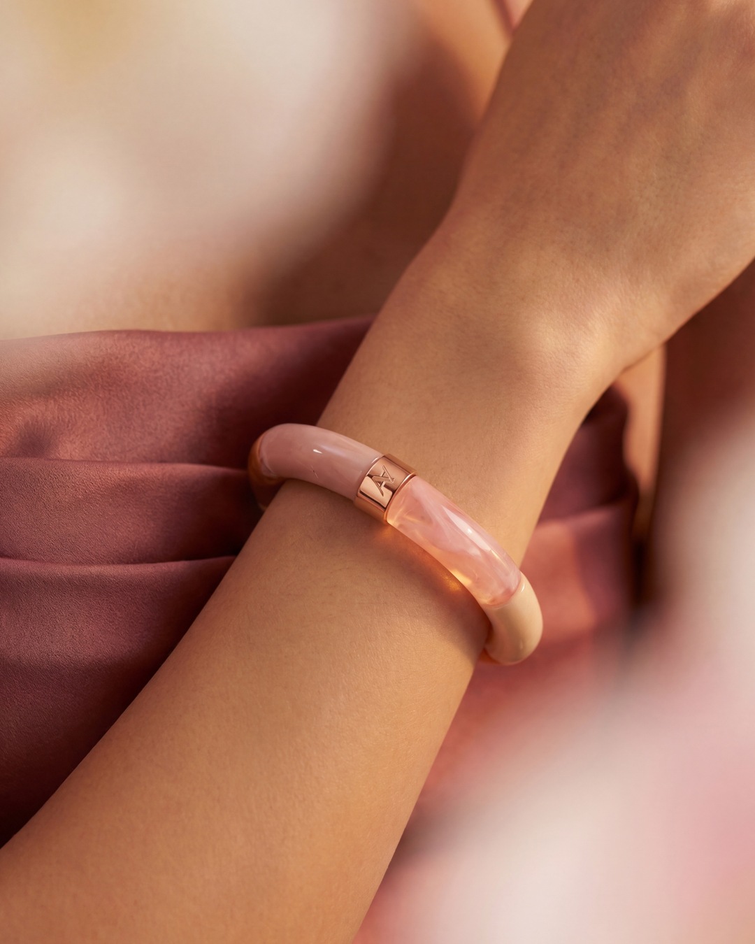 • Material des Armbandes Acetat und rosafarbener Edelstahl