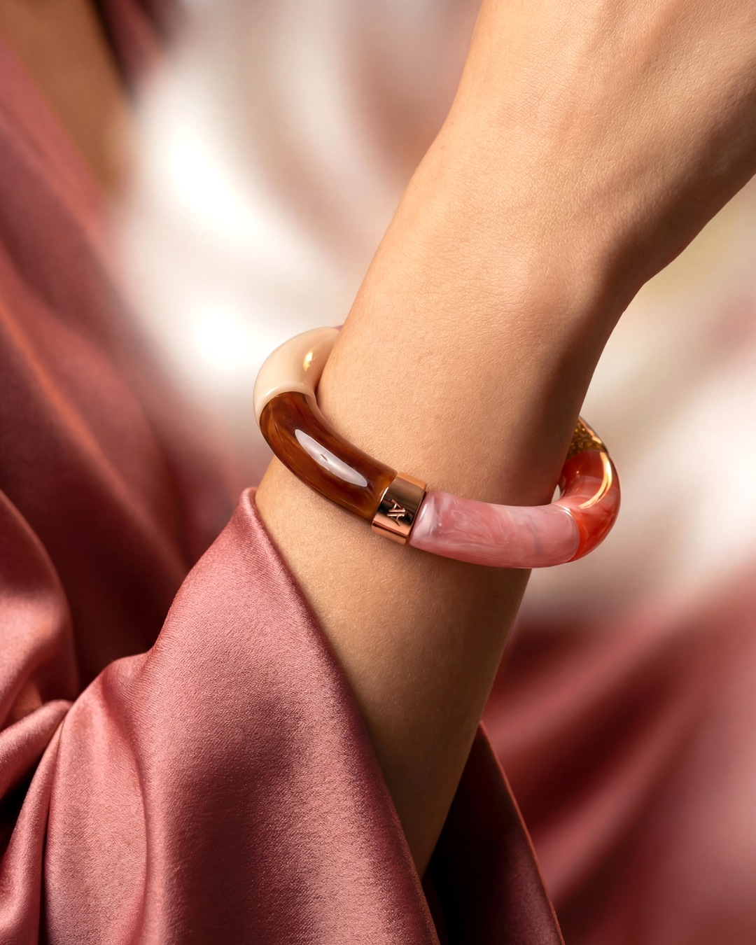 - Material des Armbandes Acetat und rosafarbener Edelstahl