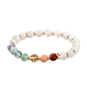 Die Verbindung von Lavendelamethyst, Chalcedon, Aquamarin, Aventurin, Citrin, Sonnenstein und rotem Jaspis schafft eine vollständige Schwingungssynergie.
