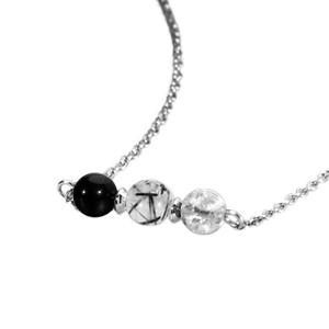 Eine zarte und dennoch kraftvolle Kombination aus Bergkristall, Rutilquarz und Onyx entfaltet ein Spektrum synergistischer Schwingungsenergien, deren Zweck darin besteht, den Träger durch beispiellose geistige Klarheit zu mehr Selbstvertrauen zu führen.