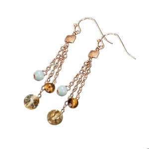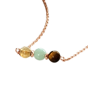 Die harmonische Kombination aus erwärmtem Citrin, Amazonit und Tigerauge steht für ausgeglichene Gefühle, starkes Selbstbewusstsein und sicheren spirituellen Schutz.