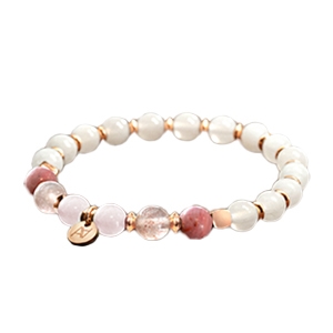Der Rest des Armbands besteht vollständig aus Mondstein, einem sehr geschätzten Edelstein für seinen milchigen Glanz und sein wunderschönes perlmuttartiges oder bläuliches Lichtspiel namens Adulareszenz,