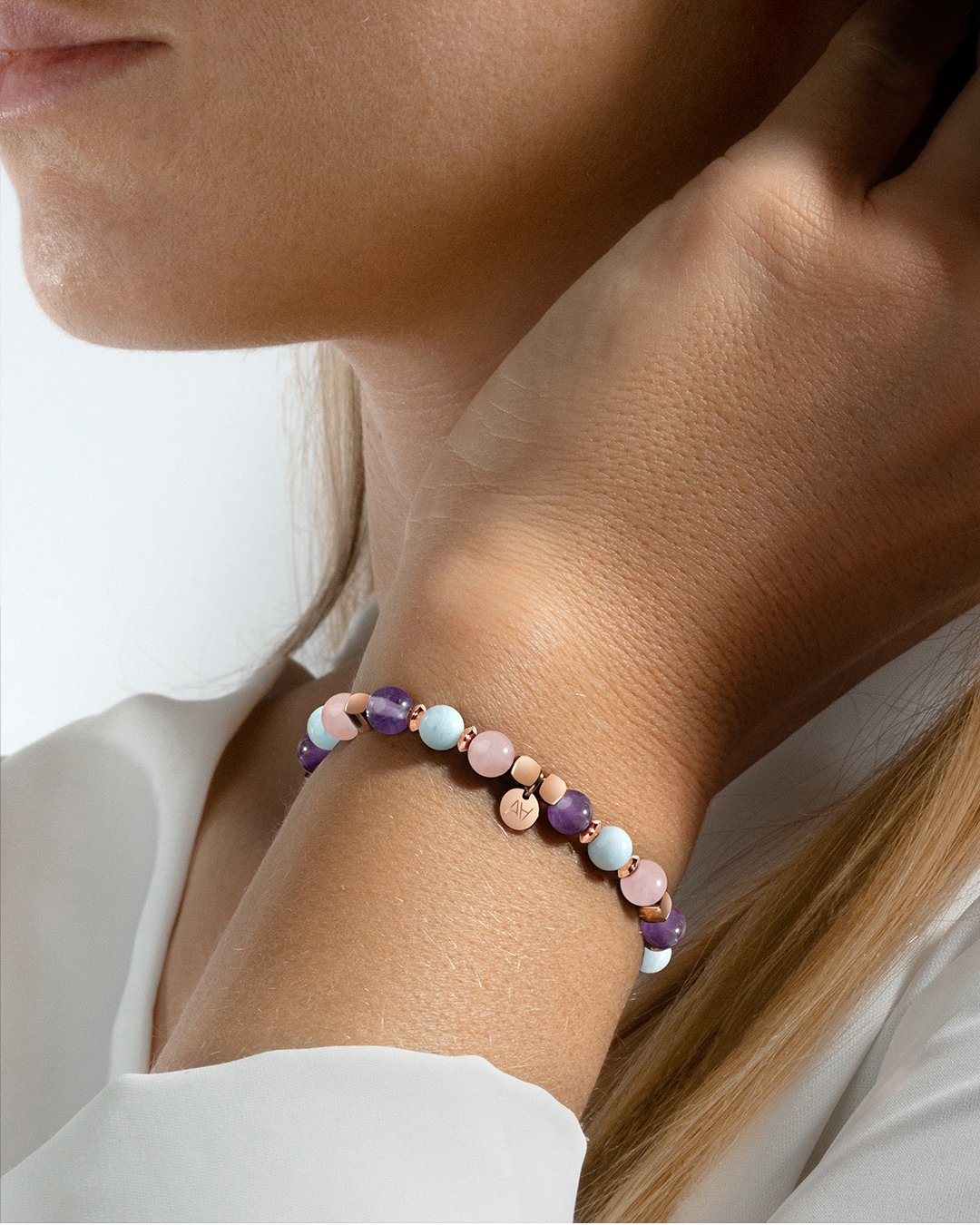 - Stein(e) Rosenquarz<br>Aquamarin<br>Amethyst