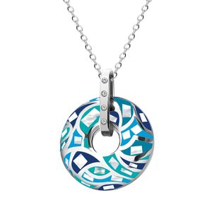 Das mit einem abstrakten Muster versehene Medaillon verleiht dem Schmuckstück Leichtigkeit und Sanftheit.