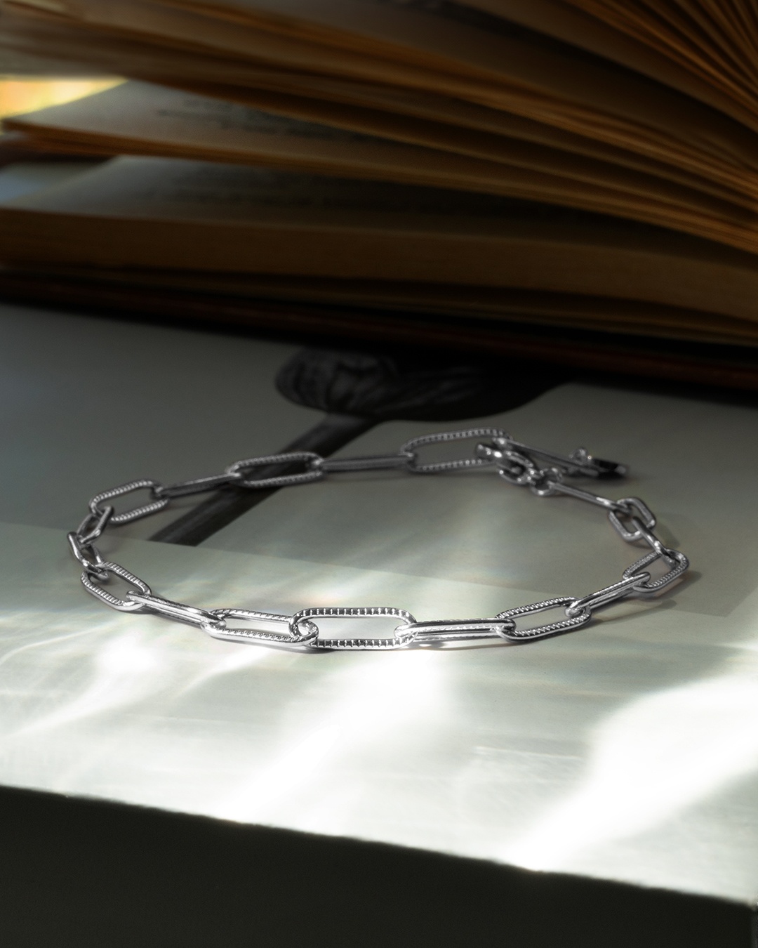 Das Armband Gaia ist aus versilberten Edelstahl gefertigt und besitzt ineinander gearbeitete, rechteckige Schmuckelemente mit abgerundeten Ecken. Sie können es dank seines cleveren Designs und einer Länge von 21 cm in jede Länge und jedem Kettenglied verstellen. Es passt sich perfekt jedem Handgelenk an und ist ein unverzichtbares Accessoire, das sich ideal mit anderen Armbändern der Marke Anna Velazia kombinieren lässt.