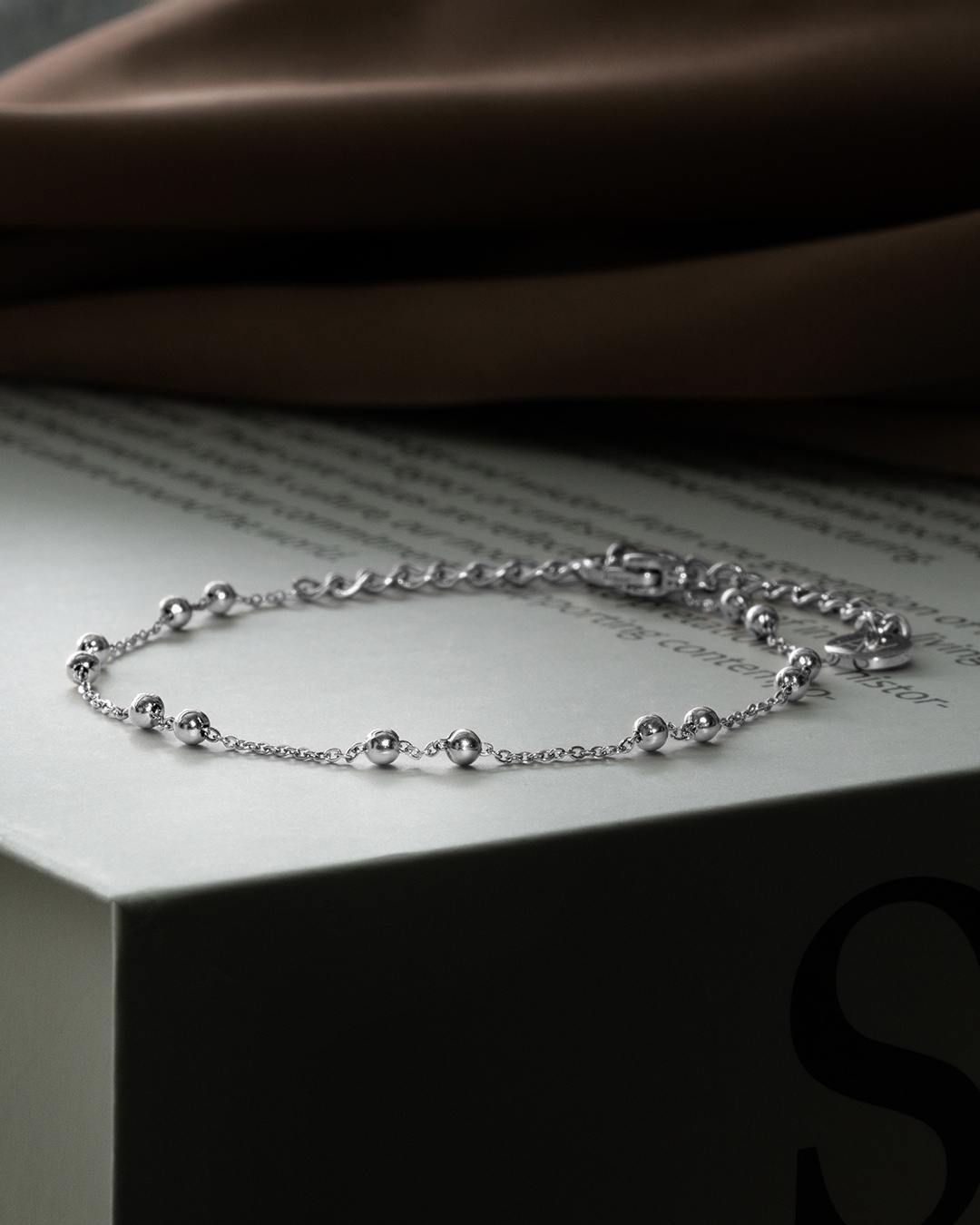 Das Armband Sofia ist mit einer eleganten Kette versehen, an der kleine Perlen aus Edelstahl befestigt sind. Das Armband hat eine Gesamtlänge von 21 cm und besteht aus einem Hauptteil von 14,5 cm sowie einem verstellbaren Teil von 6,5 cm, der sich an jedes Handgelenk anpassen lässt. Dieses Armband ist ein unverzichtbares Accessoire, das perfekt zu den anderen Armbändern der Marke Anna Velazia passt.