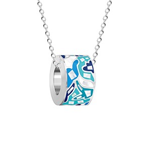Der Anhänger Casaloccio ist aus emailliertem Edelstahl gefertigt, mit Perlmutt besetzt und mit kleinen Strasssteinen verziert.