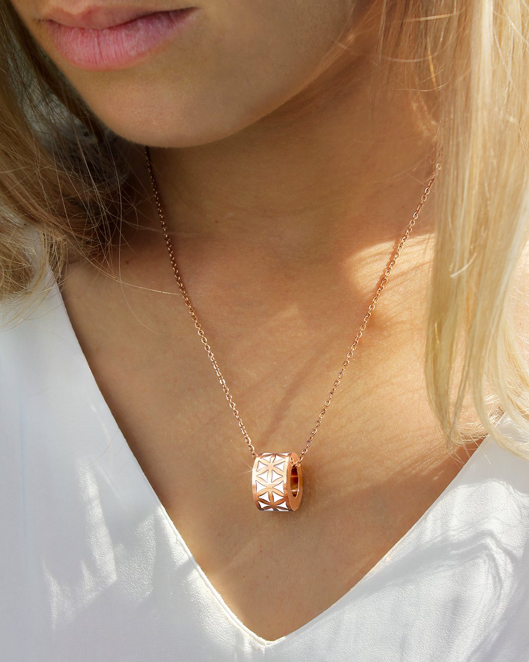 Le Fiorinio Rosa est en acier rose émaillé. L'alliance colorée de son motif et sa forme arrondie apporte une touche de caractère qui sera indispensable à votre style. Quant à sa pièce central elle représente une fleur de vie. La fleur de vie est l'une des formes géométriques les plus sacrées de notre monde. Elle symbolise le renouvellement perpétuel de la vie. D'une longueur de 45 cm et muni de sa chaînette réglable allant jusqu'à 10 cm, ce bijou s'adaptera facilement à votre tour de cou.