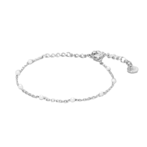 Der Anhänger Lenaya besteht aus einer silberfarbenen Edelstahlkette, die mit zarten Ornamenten aus weißem Emaille verziert ist. Die Halskette hat eine Gesamtlänge von 50 cm, mit einem Hauptteil von 43 cm und einem verstellbaren Teil von 7 cm, so dass sie sich jeder Körperform anpasst. Diese Halskette wird zu einem unverzichtbaren Accessoire, das perfekt zu ihrem Armband und anderen Schmuckstücken der Marke Anna Velazia passt.
