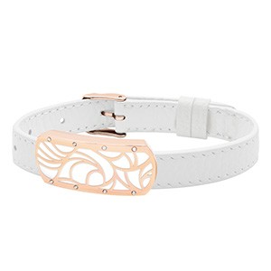 Das weiße Armband passt sich leicht an jedes Outfit an.