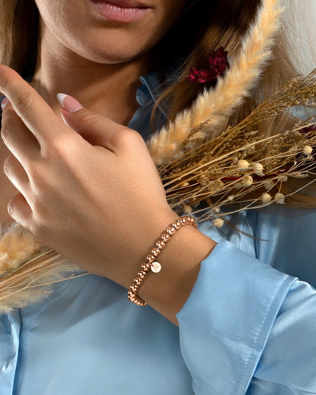Das Armband Palerma besteht aus wunderschönen, rosévergoldeten Edelstahlkugeln. Das Herzstück ist ein von Anna Velazia signiertes Schmuckschild, dass Ihren Outfits an Glanz verleihen wird. Die Zartheit dieses Armbands ermöglicht es Ihnen, es zu jeder Gelegenheit zu tragen. Sie haben die Freiheit, wunderschöne Kombinationen mit all unseren anderen rosafarbenen Armbändern zu kreieren.Die Anzahl der Natursteine kann von Armband zu Armband variieren.
