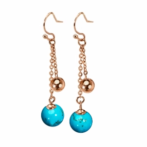 Der Anhänger Atranio besteht aus drei wunderschönen türkisfarbenen Perlen, die liebevoll zwischen roséfarbenen Edelstahlsteinen angeordnet sind.