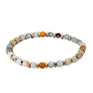 Die Halskette Buranotto ist mit 4 wunderschönen blauen Amazoniten geschmückt, die sorgfältig zwischen den von Anna Velazia signierten Anhängern aus rosévergoldeten Edelstahl angeordnet sind. Mit einer Länge von 48 cm und einem verstellbaren Teil von 6,5 cm passt sich dieses Halsband leicht Ihrem Halsumfang an. In der Steinheilkunde wird Amazonit wegen seiner beruhigenden Wirkung auf die Seele geschätzt. Er soll die innere Harmonie fördern und den Prozess des Vergebens erleichtern. Unsere Schmuckstücke bestehen aus Natursteinen und sind daher alle unterschiedlich. Daher können je nach Modell Unterschiede in Größe und Farbnuancen auftreten. Diese Unterschiede machen jeden Stein einzigartig.