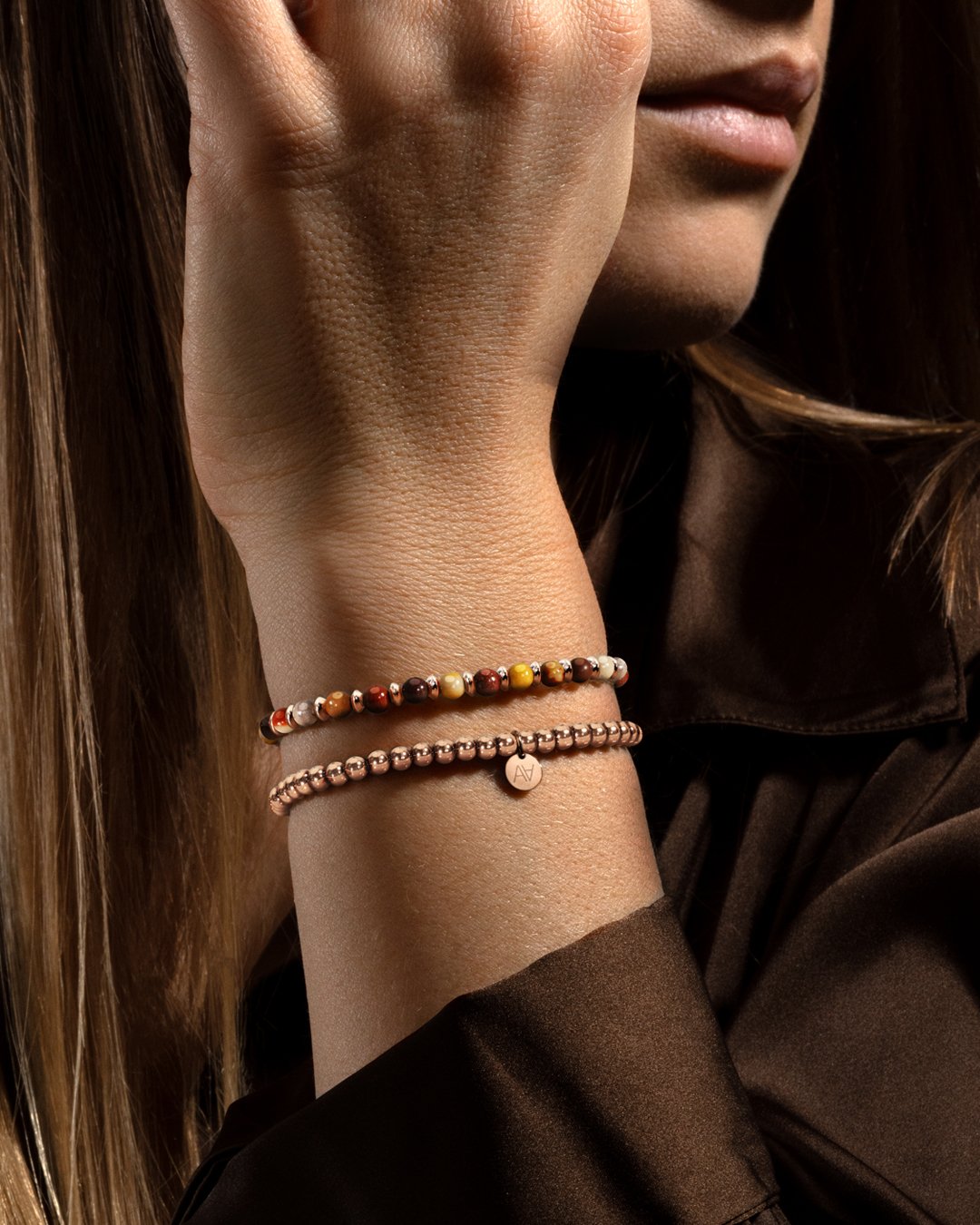 Das Armband Bellagito ist mit wunderschönen Mokkaite-Jaspissteinen besetzt.