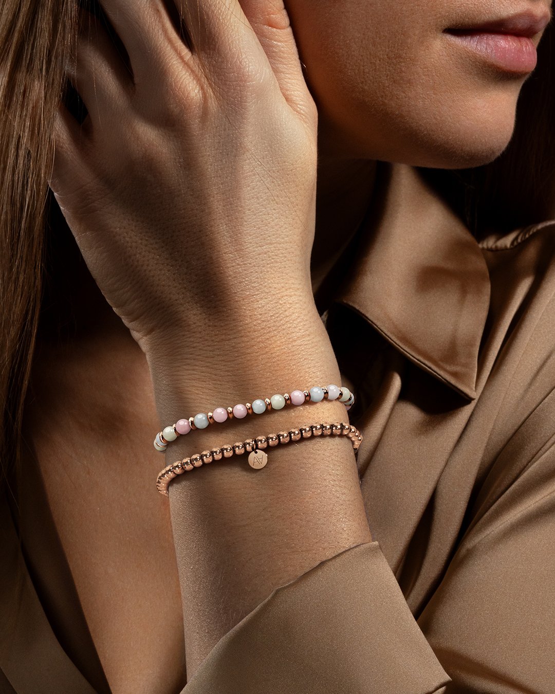 Morganit ist ein Symbol des Friedens. Er hat eine beruhigende Wirkung auf Körper und Geist. Unsere Schmuckstücke bestehen aus Natursteinen, die alle unterschiedlich sind. Daher kann es je nach Modell zu Abweichungen in der Größe und den Farbnuancen kommen. Es sind diese Unterschiede, die jeden Stein einzigartig machen.Die Anzahl der Natursteine kann von Armband zu Armband variieren.