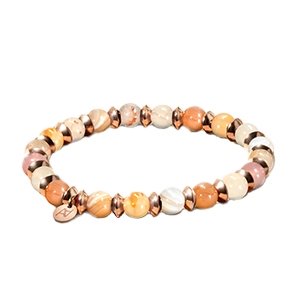 • Material des Armbands Rosévergoldeter Edelstahl und Schneeflockenobsidian