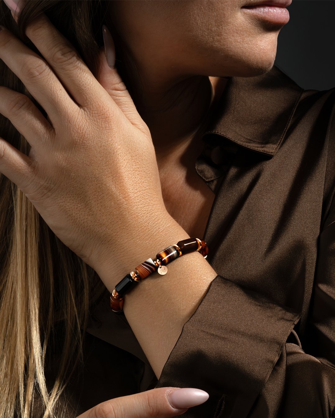 Für einen sowohl anspruchsvollen als auch individuellen Stil kombinieren Sie mehrere Armbänder, um ein einzigartiges Ensemble zu schaffen. Jedes Schmuckstück wird aus natürlich gefärbten und erhitzten Steinen gefertigt, wodurch subtile Farbvariationen entstehen, die jede Kreation wirklich einzigartig und exklusiv machen.