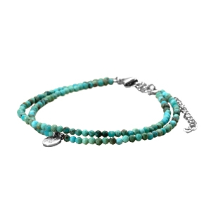 Das Bosalina-Armband besteht aus facettierten Perlen aus Türkis, bekannt für ihre schützenden und beruhigenden Eigenschaften, sowie aus weißen Marmor-Röhren, einem Stein, der für seine Fähigkeit geschätzt wird, Gleichgewicht und innere Harmonie zu fördern.
