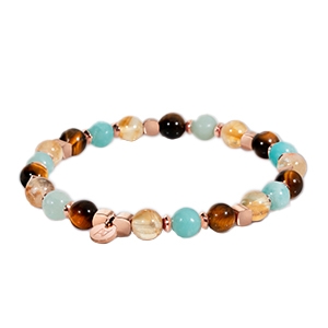 Die harmonische Kombination aus erwärmtem Citrin, Amazonit und Tigerauge steht für ausgeglichene Gefühle, starkes Selbstbewusstsein und sicheren spirituellen Schutz.