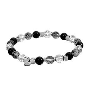 Eine zarte und dennoch kraftvolle Kombination aus Bergkristall, Rutilquarz und Onyx entfaltet ein Spektrum synergistischer Schwingungsenergien, deren Zweck darin besteht, den Träger durch beispiellose geistige Klarheit zu mehr Selbstvertrauen zu führen. Isabelle Perrin, Bio-Energotherapeution