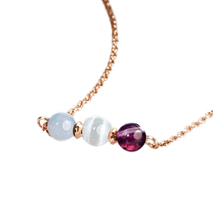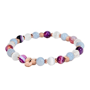 Die Verbindung aus Chalzedon, Selenit und gestreiftem violettem Achat formt eine einzigartige Harmonie, die uns ein tiefes, emotionales Gleichgewicht schenkt. Jeder dieser Steine ist wie ein Netz, das Gelassenheit, Kommunikation und mentale Stärkung fördert.
