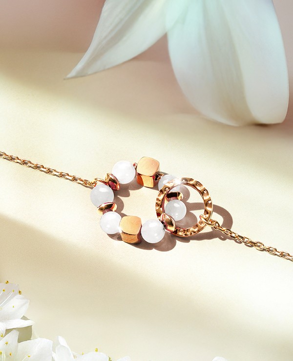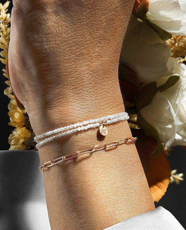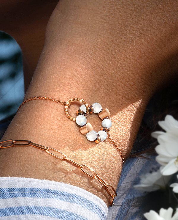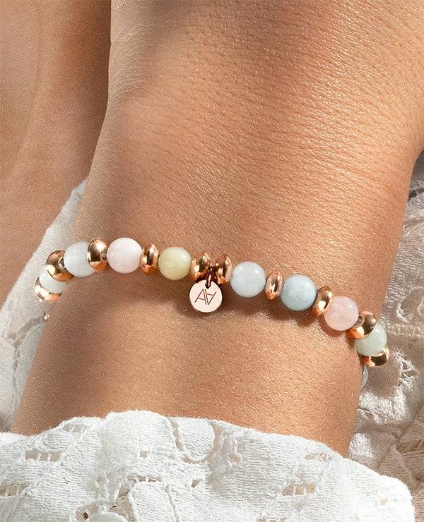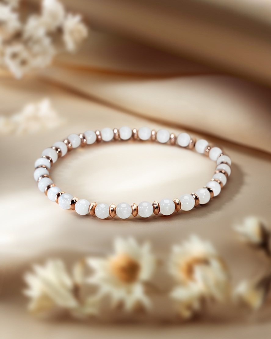 calcédoine, quartz rose, pierre de lune, sélénite Bracelet de lithothérapie personnalisé
